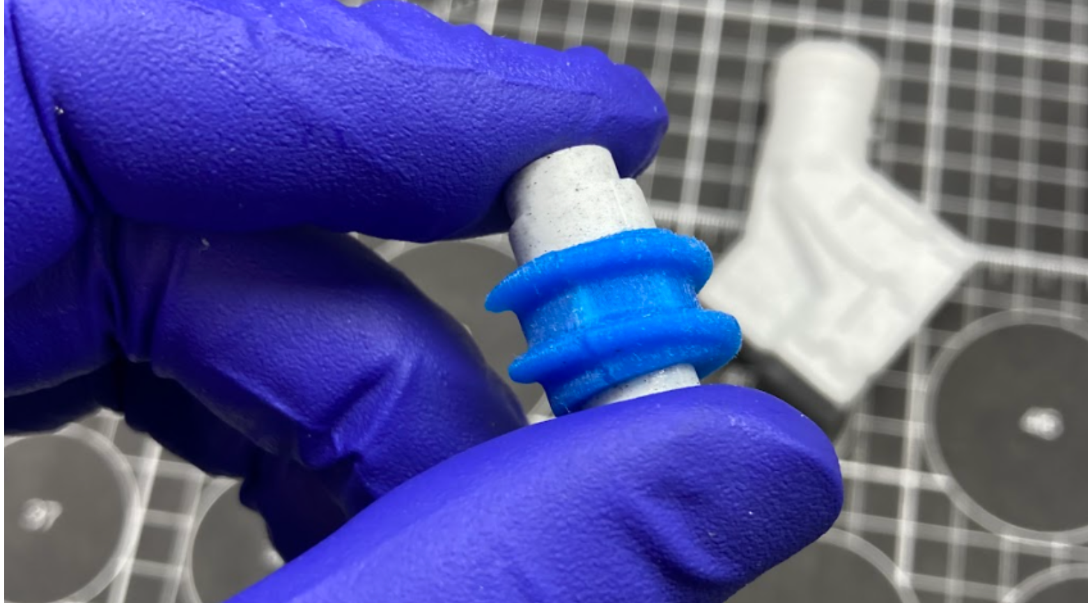 This prototype gave a rough sense of the envelope the rest of the solution needed to fit within, and molded silicone was the first prototype of the screw mechanism. It proved too wiggly for this application.